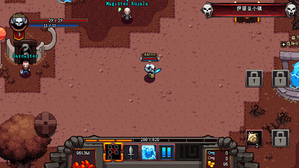 物品系统:物品分为,白色,蓝色,黄色,粉色,暗金。 部位分为,武器、头、甲、鞋、手、项链、饰品,物品的技能与属性会随机生成,会很有打boss掉装备的体验。