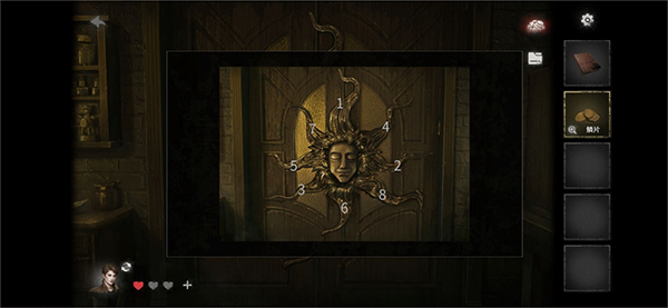 然后女的那边圣柜那会出现1个恶魔雕像,上面有个数字顺序,右边的角缺了1个数字,可以很明显猜测是3;