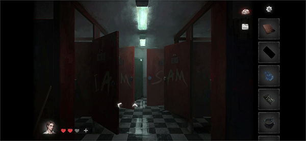 出来浴室看左边墙上的女子壁画,有个月亮,圆圈,按照顺序,去按马桶冲水,得到一把刀片;