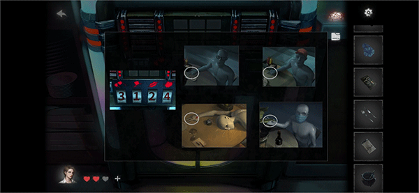 然后就可以去解谜冰箱旁边那台发光的机器了,密码是:3124,得到1个拼图图案,还有1张光盘;