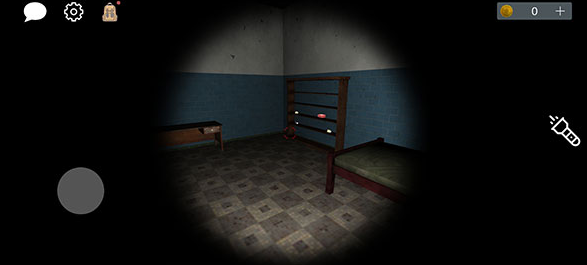 4、初始状态,玩家拥有手电筒(可关闭),左上角分别是来聊天、设置、以及背包,用于游戏中收集线索道具。