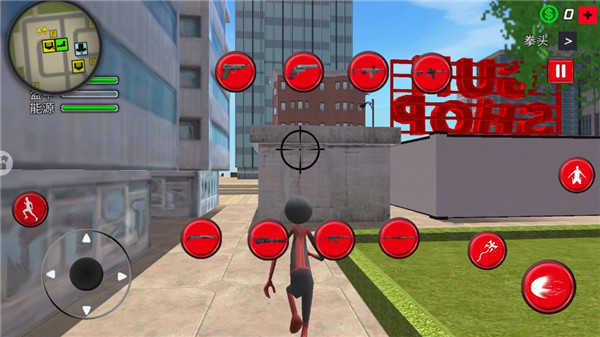 3、游戏采用经典的轮盘控制,左边为方向,右边为各种行动,画面上的各种武器都是可以使用的。