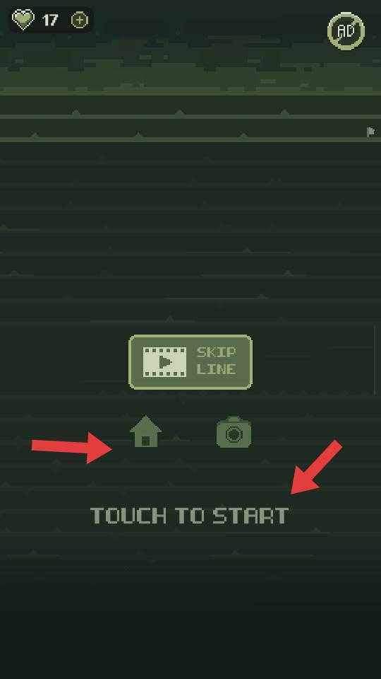 4、倘若游戏出现状况,界面将会显示“TOUCH TO START”,点击屏幕即可重新开始,也能够选择“SKIP LINE”等操作。