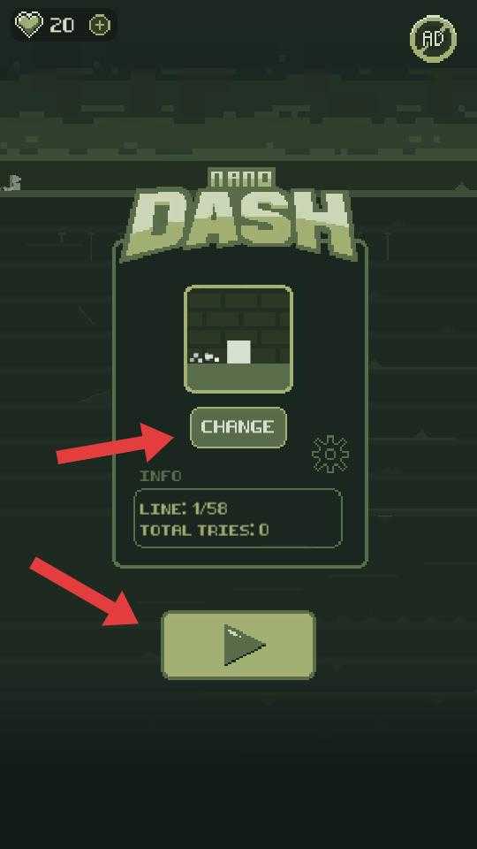 1、进入游戏,界面有播放按钮,点击它可开启游戏,还能点击CHANGE按钮,去选择不同的角色。